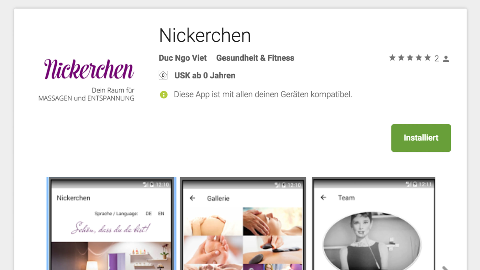 Das Nickerchen Berlin ist ein Massagestudio in Berlin Kreuzberg. Die App bündelt die Informationen rund um das Massagestudio an einem Ort. Durch eine Treatwell Integration, könnnen hierüber auch Termine gebucht werden. Ich habe diese App gebaut, um mobile App Entwicklung zu lernen.
